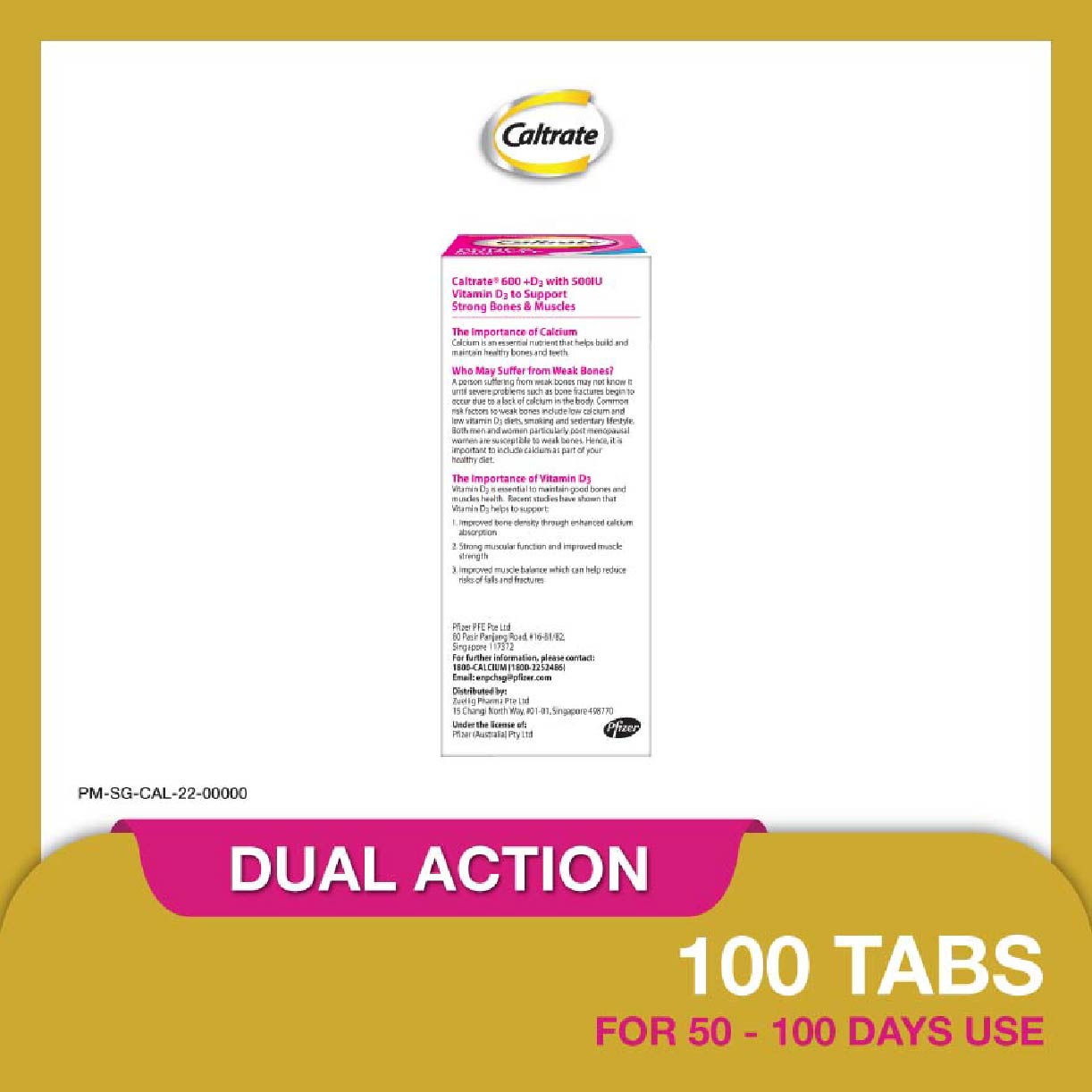 CALTRATE 2 In 1 Dual Action Calcium + Vitamin D3 Tablets 600Mg (For Bones & Muscles) 100S