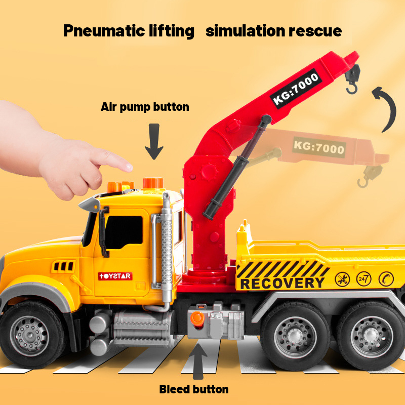 Boy Trailer Toy Crane Children's Car Large Crane Flat Road Wreckage Engineering Transport Rescue Vehicle