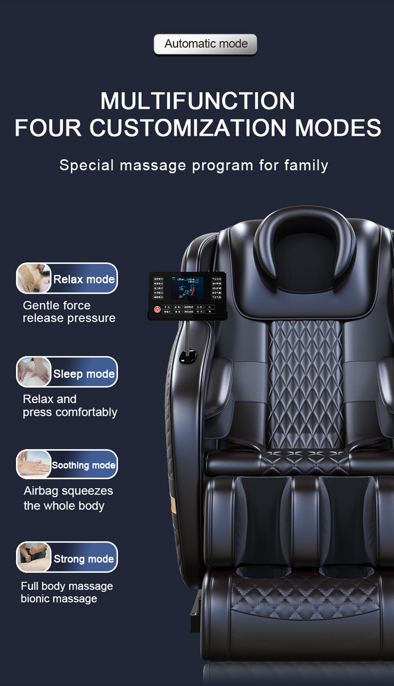* Relax mode:  Gentle force release pressure * Sleep mode:  Relax and press comfortably * Soothing mode:  Airbag squeezes the whole body * Strong mode:  Full body massage bionic massage