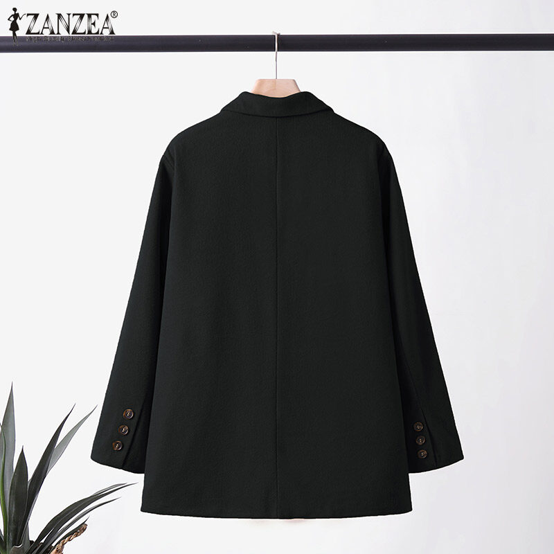 [Clearance Sale]ZANZEA Womens Business Long Sleeve Buttons Up Coat Formal Opent Front Jacket Plain Blazer #3 CLE