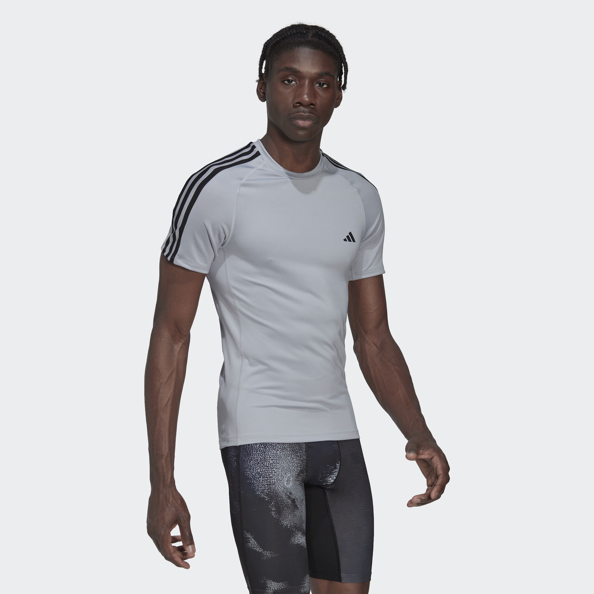adidas Training Techfit 3-Stripes Training Tee Men Grey HJ9914