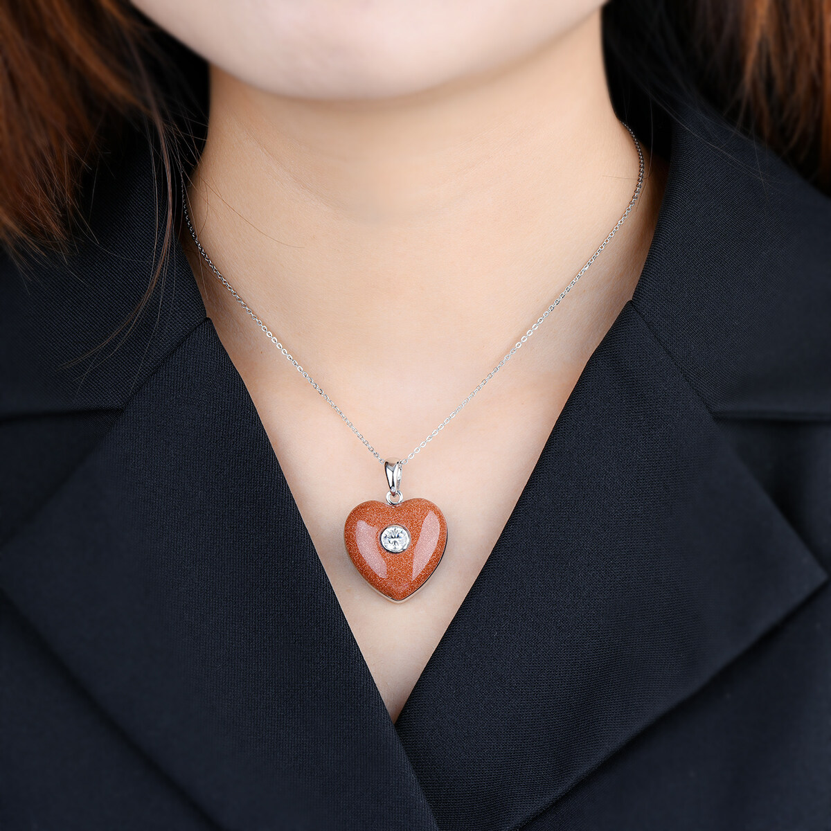 Heart Shape Gold Sand Stone Pendant Natural Gemstone for Women's Gift Real 925 Sterling Silver