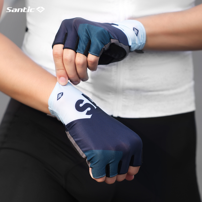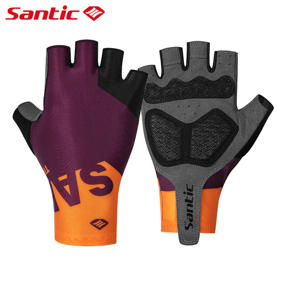 Santic Men Women Cycling Gloves Shockproof Breathable Road Bike Bicycle Short Finger Gloves